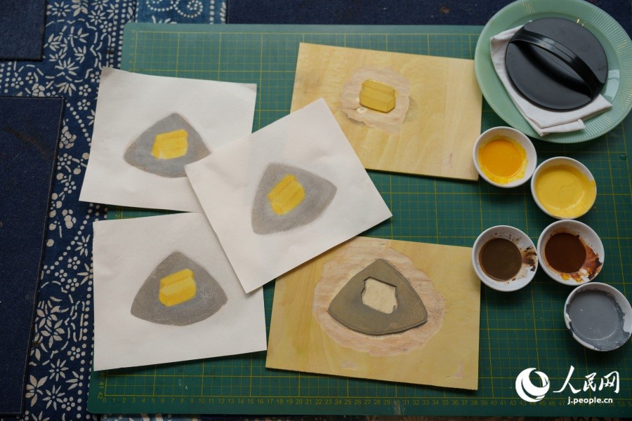 图为丁未堂创作的木版画及木版。人民网记者张若涵摄
