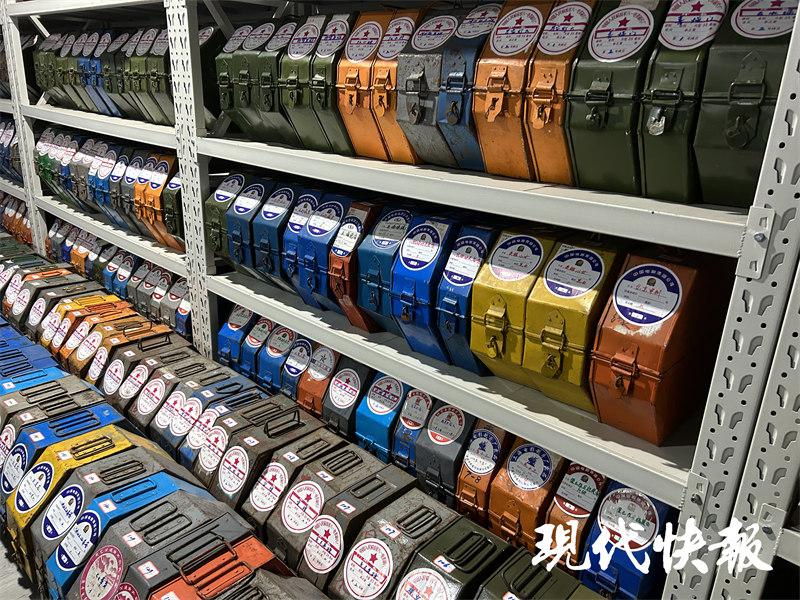 说话间,吴方忠带着记者来到了一扇白色房门前,打开门,一丝凉意扑面而来。屋内的架子上放着各种老电影胶片拷贝,8毫米、9.5毫米、16毫米、35毫米、70毫米胶片,还有中国特有的8.75毫米胶片,全部分门别类地整理存放,其中不少装胶片的铁盒已生了锈。