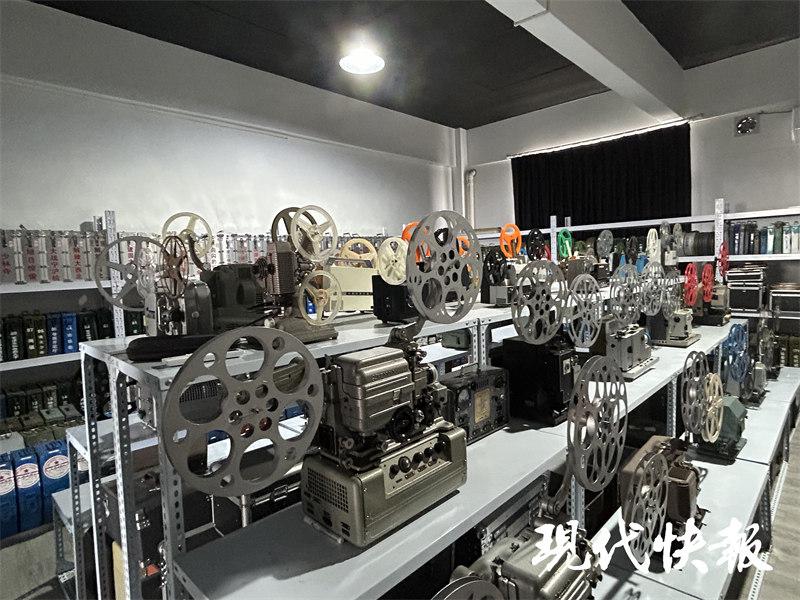 吴方忠是吴江当地的一名企业家,所有收藏来的宝贝都专门存放在他公司5楼的库房里。据他介绍,不同型号的胶片、不同年代的电影放映机、数以百计的几乎绝版的放映机配件、与电影相关的各种珍贵资料……500平方米的老电影片库可谓应有尽有。走进库房,映入眼帘的便是一幅巨大的幕布,幕布正前方摆放着一台台老式放映机,我每天都会打理,空的时候修复下放映机,时常还会用放映机放电影,给朋友们看,顺便测试下机器的放映效果。吴方忠介绍,库房里的每一台机器经过自己的修复,都可以正常运转。