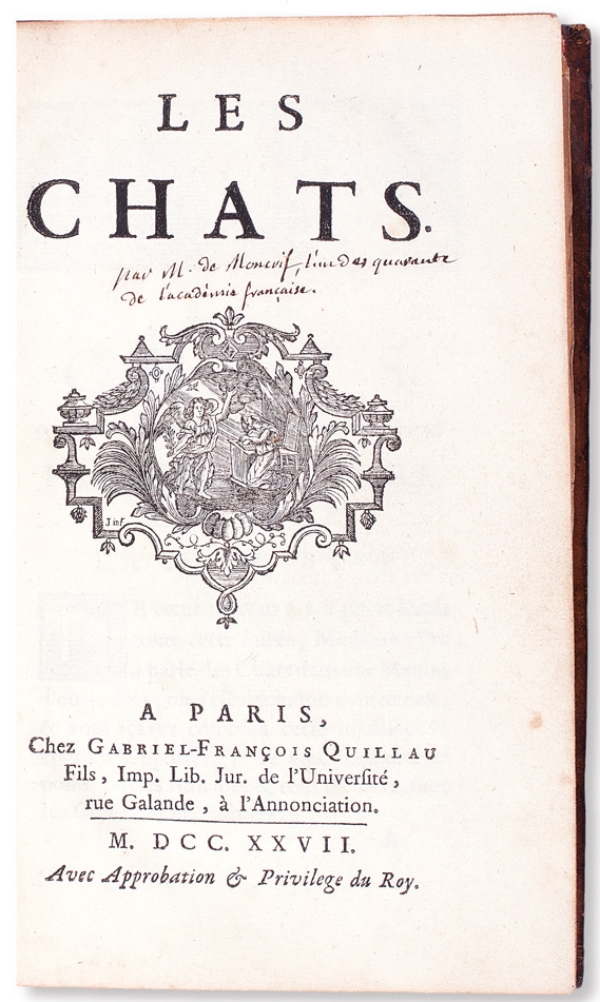 1762年,当你打开卢梭的《社会契约论》时,你万万不会想到书的扉页会有一只小猫,对,那只小猫正安静地蹲坐在正义和秩序女神忒弥斯(Themis)的旁边;当你穿越到18世纪的凡尔赛宫,想着偶遇一下法国国王路易十五时,却碰到他正和一只名叫布里扬(Brillant)的大白猫玩耍;当你沉浸在如火如荼的18世纪法国启蒙运动中时,博物学家布冯伯爵却告诉你猫具有“与生俱来的恶意”;时间停留在1747年,你读到英国新古典主义诗人托马斯·格雷(ThomasGray)为缅怀朋友的爱猫写的诗《写给溺死在金鱼瓷瓶中的爱猫的挽歌》,谁料到,这首诗同时讥讽猫和女人。18世纪,猫成为更多人的宠物,享有模棱两可的声誉,也出现在更多文学、艺术作品里。