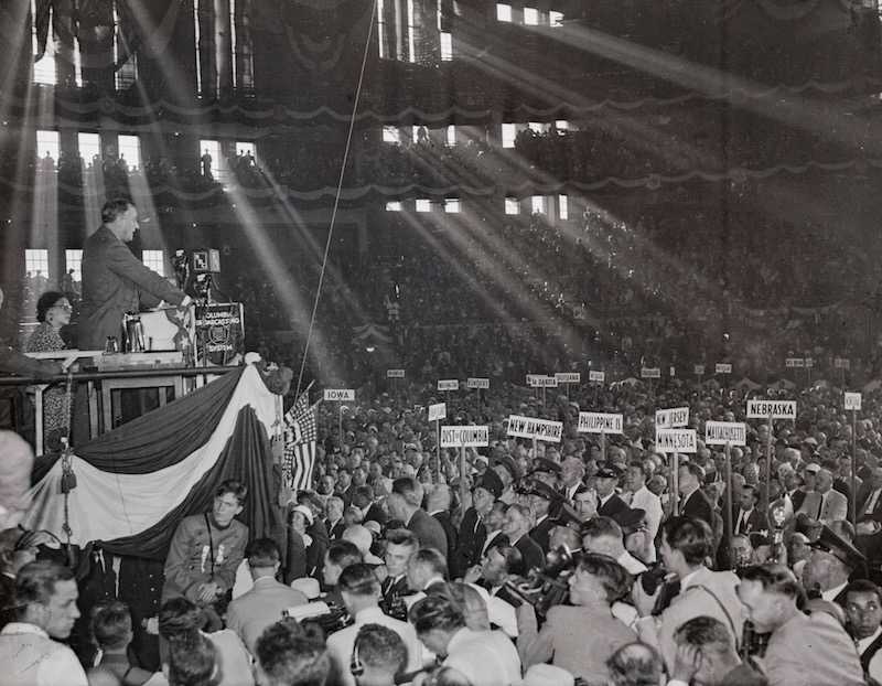 1932年,罗斯福在民主党全国代表大会上接受总统提名。此次展览指出,所有代表都是白人