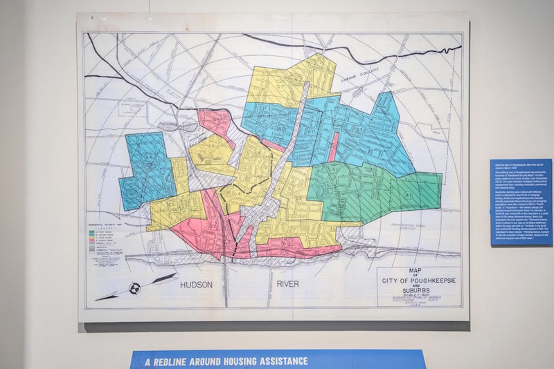 展馆内的一位讲解员引导参观者走向一个“令人惊叹的东西”——一张1937年波基普西市附近的房屋所有者贷款公司地图,上面标注了以黑人为主的地区对贷款人来说是“危险”的。