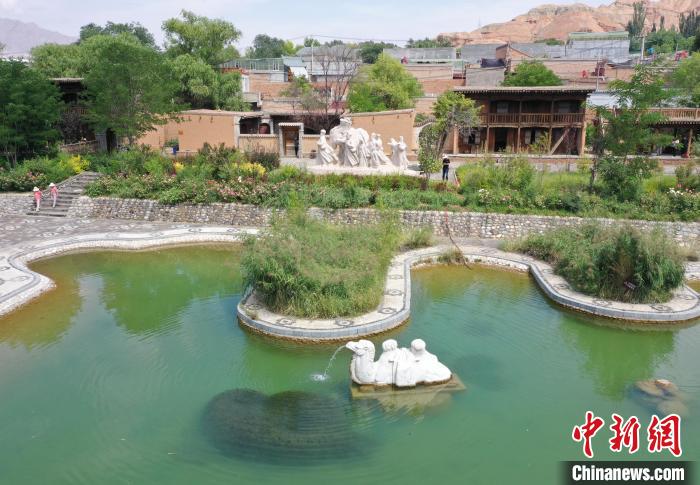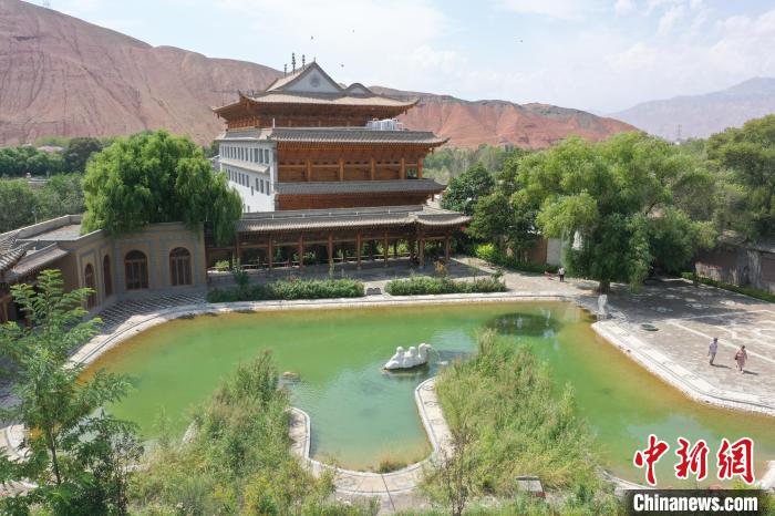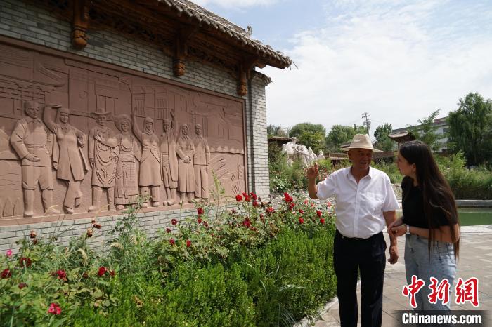 图为青海省海东市循化县撒拉族历史文化地标骆驼泉内,土库曼斯坦留学生唐一泓(右)和当地讲解员进行交流。马铭言摄