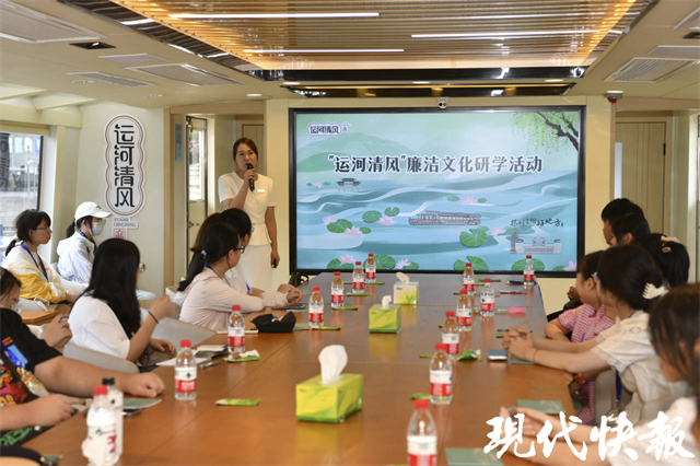 现代快报记者了解到,“运河清风”文化研学专线是全域旅游公司以大运河文化带建设为契机倾力打造的文旅融合廉洁特色产品。专线以运河为主线,水上巴士为载体,汲取运河沿岸的廉洁基因串珠成链,通过水陆结合的方式,让参学者在感受运河传统文化的同时,沐勤勉之风,悟清廉之道。