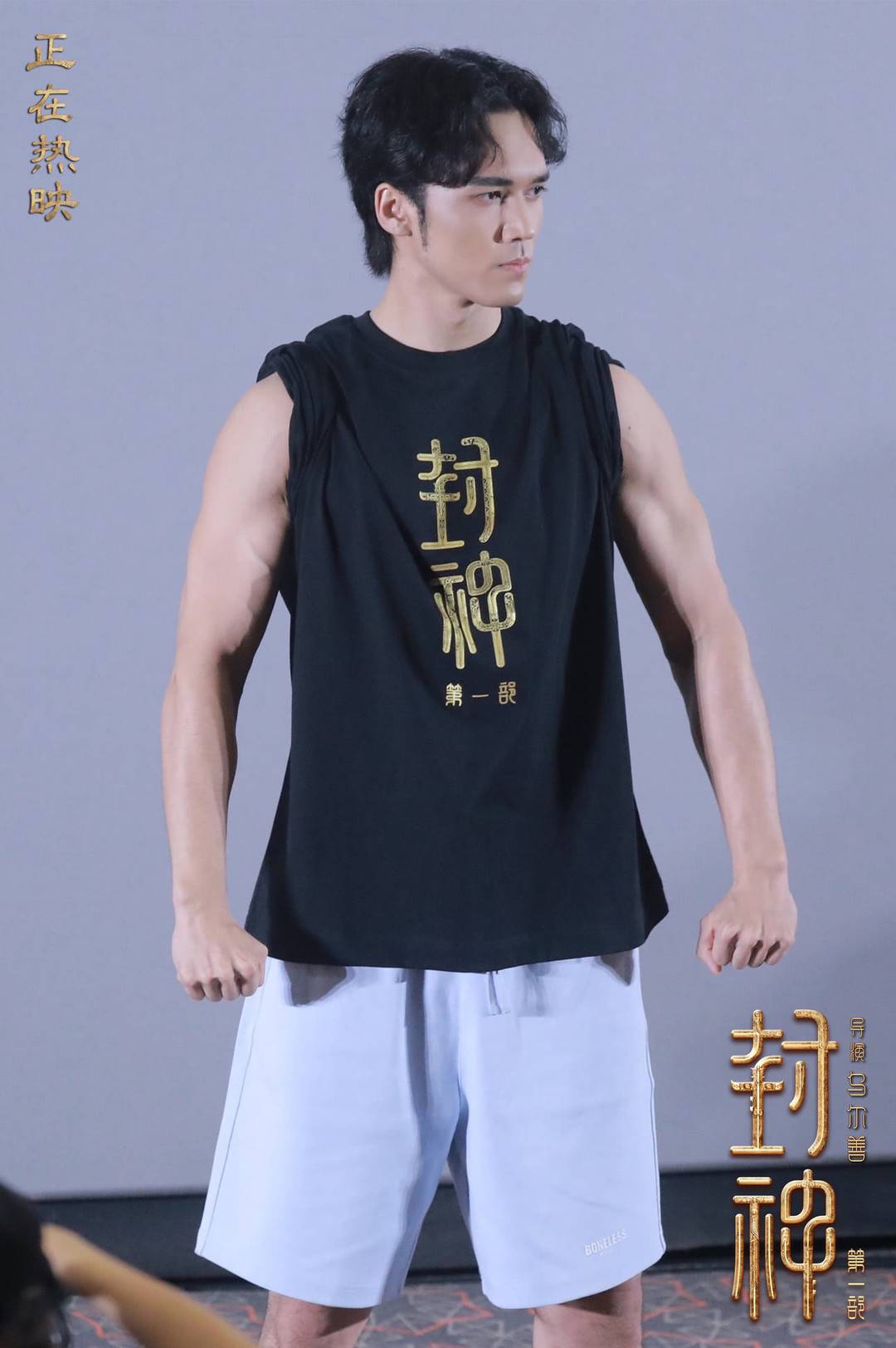 饰演殷郊的陈牧驰路演时展示好身材图据片方