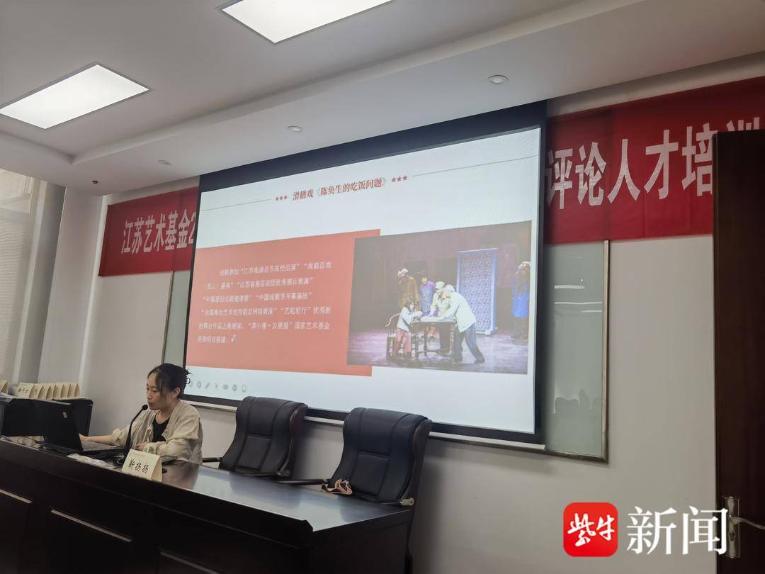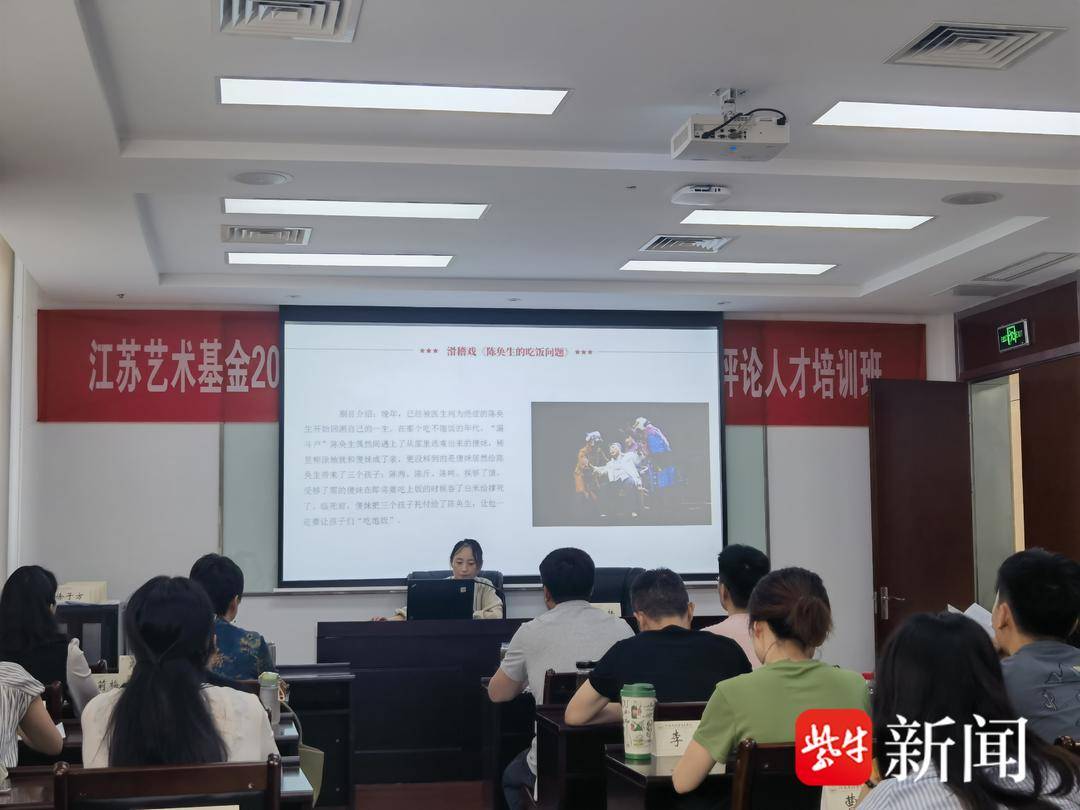 2023年8月7日下午,由江苏艺术基金资助,江苏省艺术评论协会、《扬子晚报》共同主办的2023年度艺术人才培养资助项目“舞台艺术评论人才培训班”邀请江苏省艺术评论学会副秘书长靳扬扬老师为大家主持、授课,带领学员们赏析、讨论优秀滑稽戏剧目《陈奂生的吃饭问题》。
