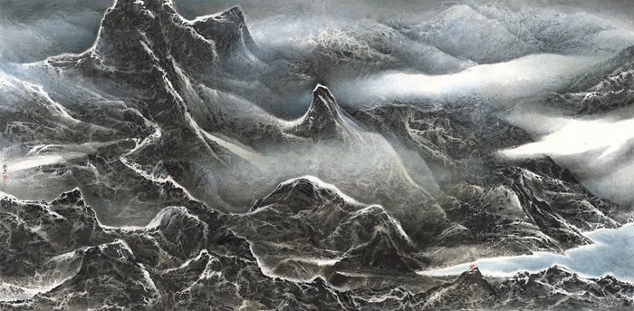 刘国松雪景远上白云间2020水墨设色纸本187.5x385.5cm刘国松基金会捐赠新加坡国家美术馆收藏