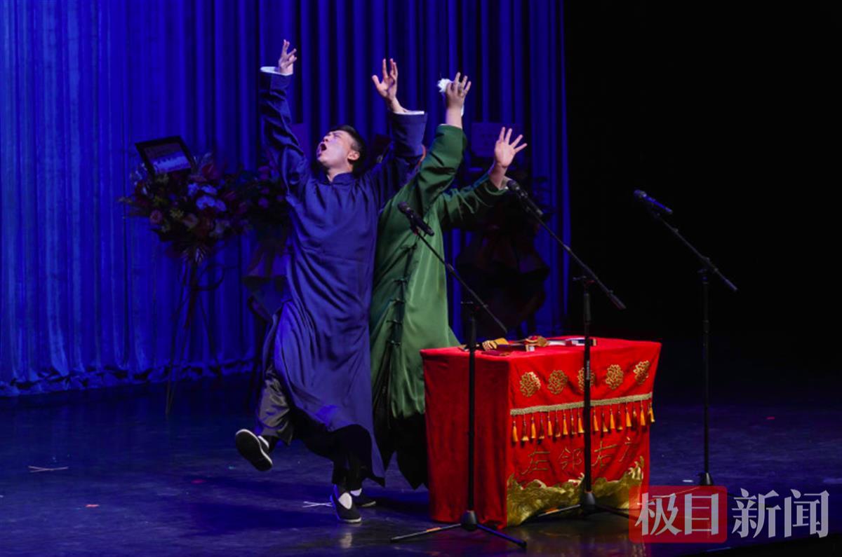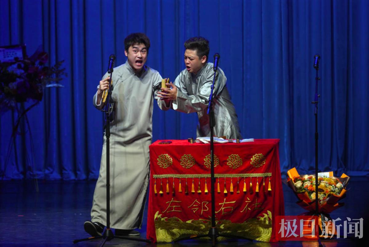 日前,“左邻右社”在湖北剧院迎来两周年庆典演出,著名相声表演艺术家、湖北曲艺家协会主席陆鸣,脱口秀演员解师傅作为嘉宾与一众演员们同台献艺,用一个个引人捧腹的段子将台下观众逗得前仰后合。