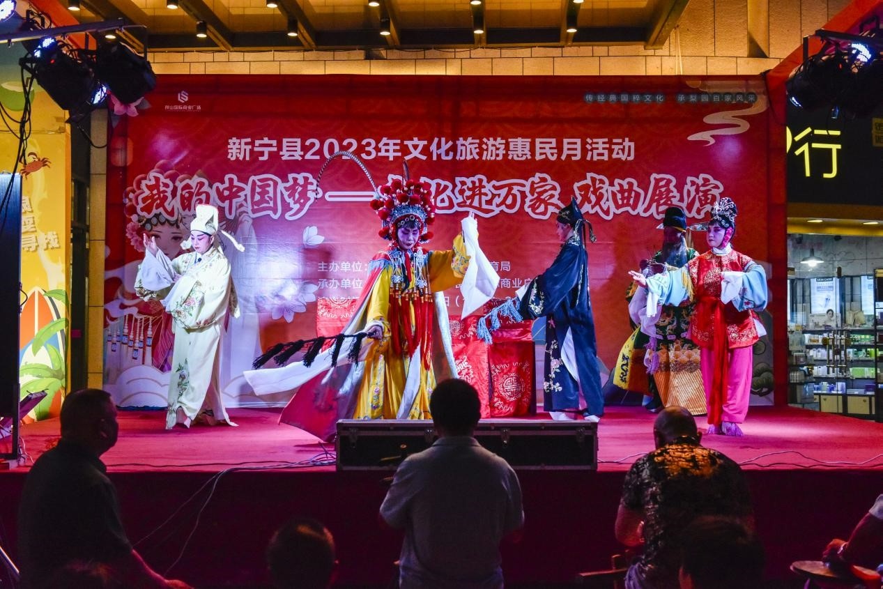 “今晚的戏曲和杂技特别好看,这几天我都要带上亲友来感受一下热闹的氛围,这顿‘文旅大餐’让我们老百姓一饱眼福”8月18日,一场免费为市民提供的文化旅游惠民月系列活动之“我的中国梦——文化进万家戏曲展演”在湖南省新宁县崀山国际商业广场精彩上演。这也是该县文旅部门助力文化旅游惠民月系列活动开展为市民带来的新体验。