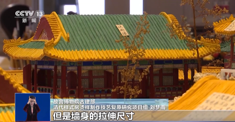 故宫博物院古建部清代样式房烫样制作技艺复原研究项目组刘梦雨:其实我们也没有直接的数据去参考,所以前期的方法就是笨办法,就是按照1.1倍拉伸,1.2倍拉伸,1.3倍拉伸,一直拉到1.8倍,全部放在这里,然后去跟烫样的照片去比较,看哪个看起来感觉就对,当时做了好多好多模型,一点点尝试出来的。(总台央视记者田云华闫洪)