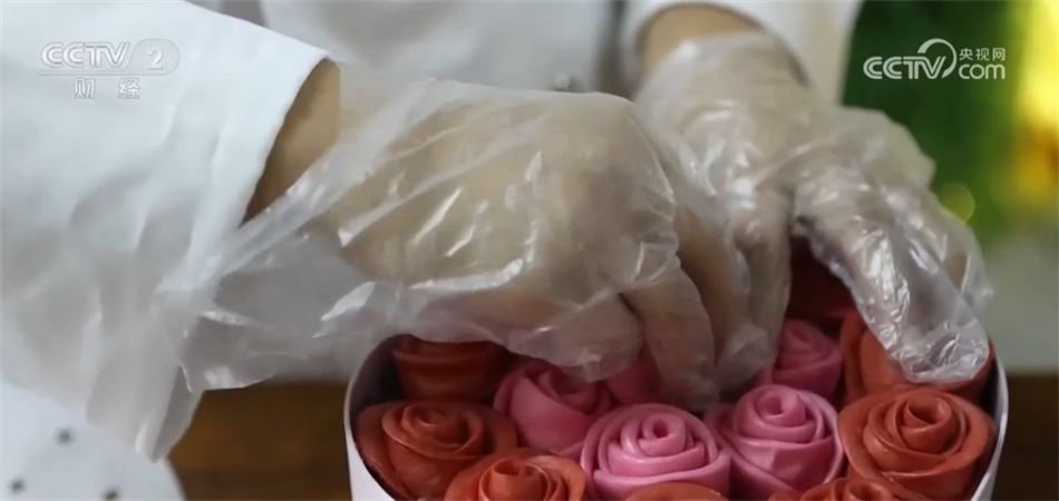 湖北省郧西县巧食非遗传承人卢芸:每年七夕节都会有许多年轻人来订购花馍礼盒,像这款玫瑰花礼盒特别受欢迎,它寓意爱情长久。
