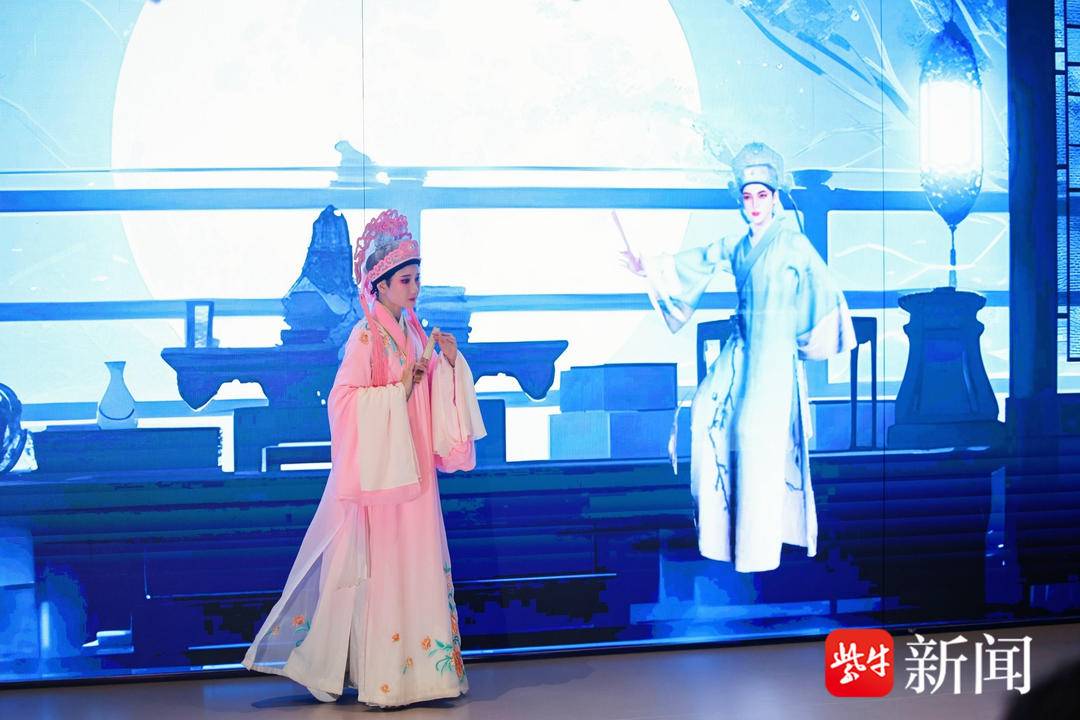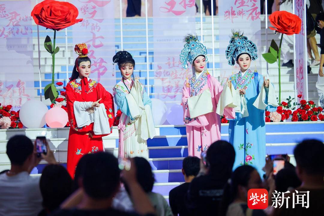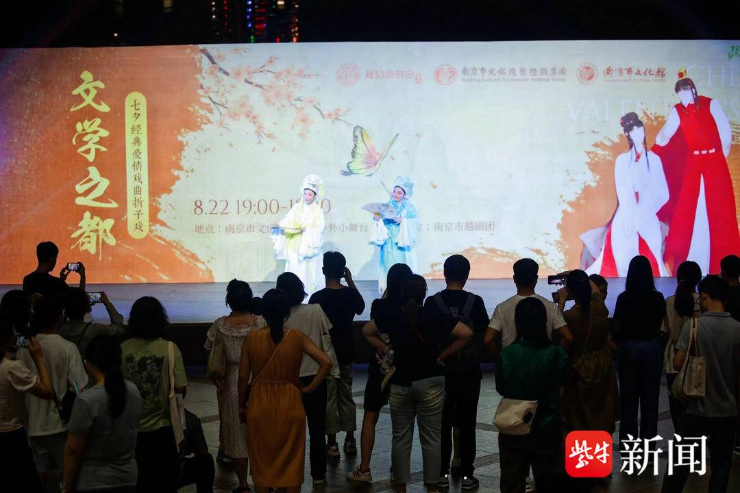 8月22日晚,浪漫中国传统佳节的气氛从一抵达南京文化艺术中心就能感受到了,一楼氛围感十足的户外舞台上演的经典爱情折子戏,是由南京市越剧团演绎的《红楼梦》选段《读西厢》和《梁祝》选段《十八相送》,即刻就把到场众人带入到文学戏曲的浪漫之中。