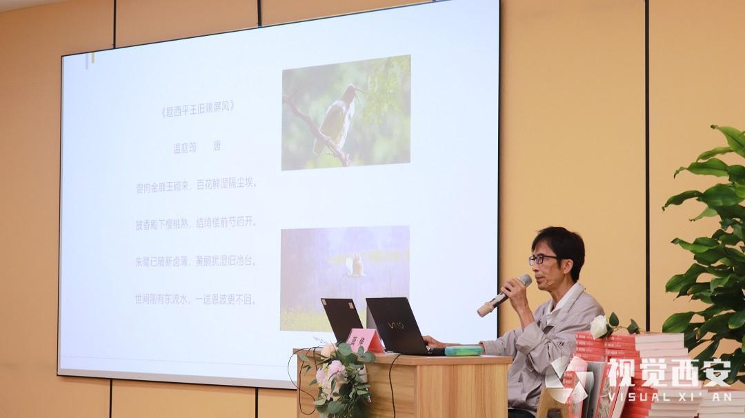 讲座中,陕西省作家协会原副主席莫伸先生围绕自己的作品《重现的翅膀——中国朱鹮保护纪实》一书,向读者们讲述了中国朱鹮拯救和保护的艰辛历程。通过当年中国与日本朱鹮现状为切入点,从朱鹮的形象、朱鹮的历史地位、中国朱鹮的保护工程以及朱鹮的习性这几个方面,详细讲述了“东方宝石”从蒙尘到溢彩的经历。