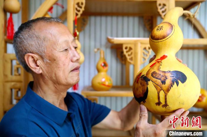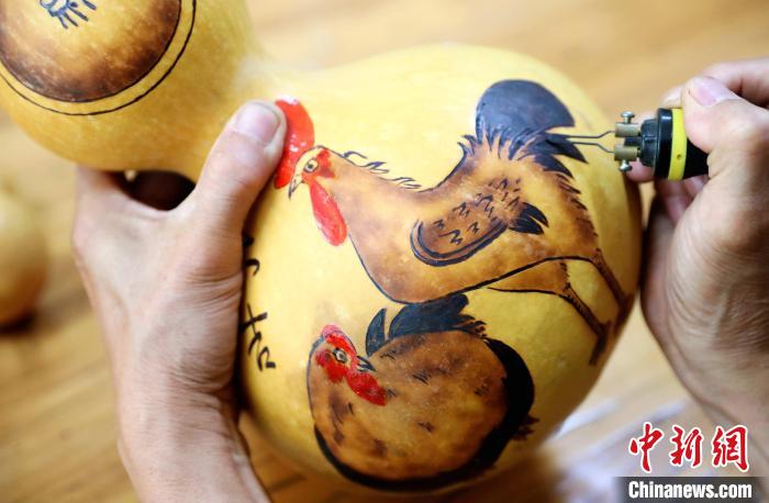 葫芦雕刻非遗传承人进行烙画葫芦艺术创作。张进刚摄