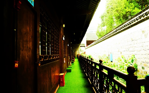 村主任老廖说,他在这里念的小学和初中。东西二斋为教室,由两堵矮墙隔开,隔音效果出奇地好,东边的教室自习,完全听不到西边教室朗读的声音。老廖为我们指认老式青砖上铸有“渔浦书院造”的字样;指认当年仿照岳麓书院——在头门墙体上书写的“忠孝廉节”四个大字,惜乎墙体维修,斗大的字只剩下半截了。学校放暑假了。穿行在长长的教室走廊,耳畔依稀响起当年的校歌:“澧水东去,山水秀丽背太华。敦其博,矢期显扬。唯渔浦,是吾母校,人才辈出,家国辉煌。续努力,一致奋发图强。任重道远,岂容彷徨!绮欤秀哉,祝渔浦,千秋万岁无疆!”登上八角楼,俯瞰书院全景,老廖欣然相告:近年间村中一男一女考上清华和北大,都是在这里念的小学,渔浦学子后继有人!