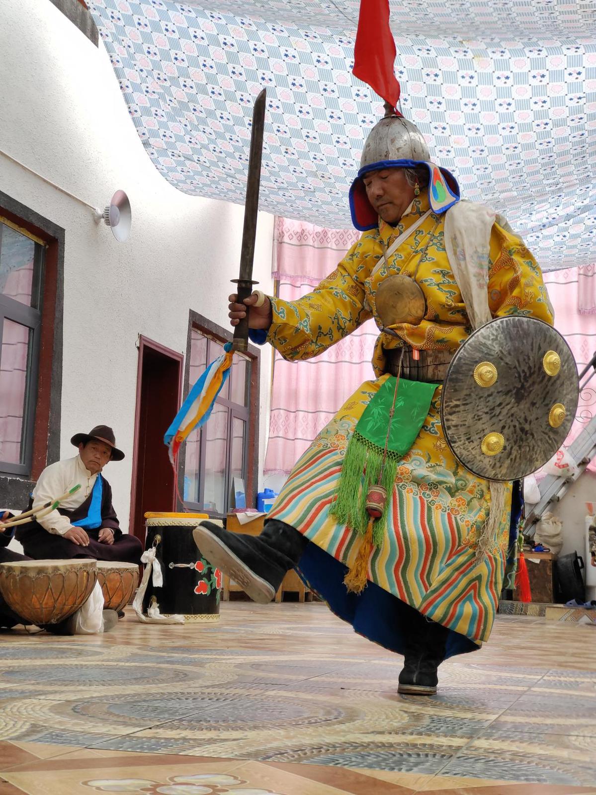 果尔孜舞有1300多年历史,舞者穿戴头盔、盔甲,手持军剑和盾牌,配合普兰特有的“噶尔”和“宣”的鼓点起舞。2011年,普兰果尔孜舞被列为第三批国家级非物质文化遗产,其传承还沿袭着传统的口口相传,在传承人旦成益西的带领下,目前西德村果尔孜队伍有19人,最大的64岁,最小的25岁。