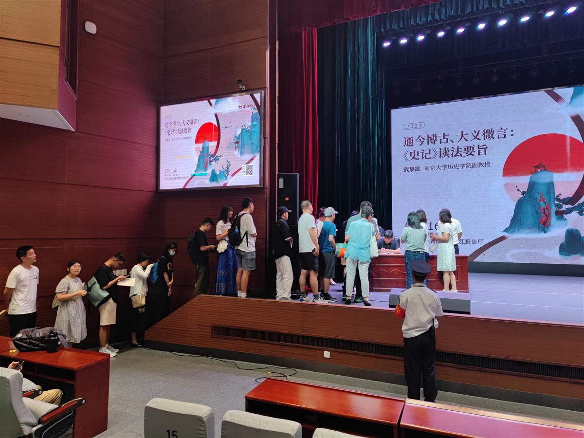 9月16日,南京大学历史学院副教授武黎嵩做客长江讲坛,分别从春秋笔法、史实取舍和史家眼界三个方面,与读者分享正确打开《史记》的方式。本场讲座吸引了很多年轻读者,不少家长带着孩子前来聆听,线上直播间人数创新高,听众们跟随精彩讲解也各抒己见、讨论热烈。