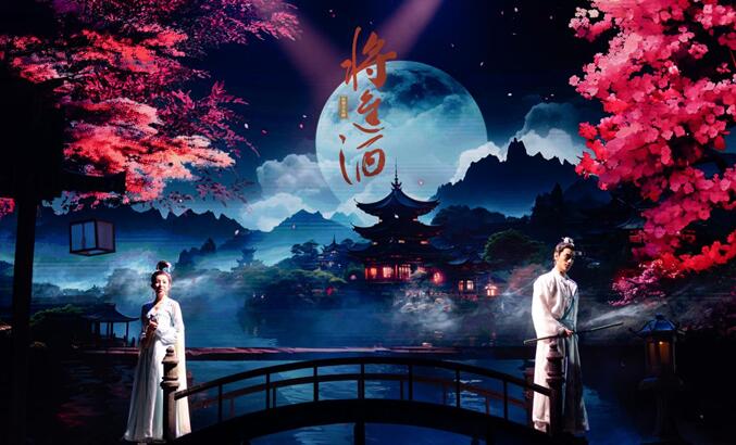 在舞美设计上,《将进酒》将LED技术搬上舞台,充分延展了舞台视觉呈现,传统文化与现代科技结合,以数字技术打造艺术奇观。