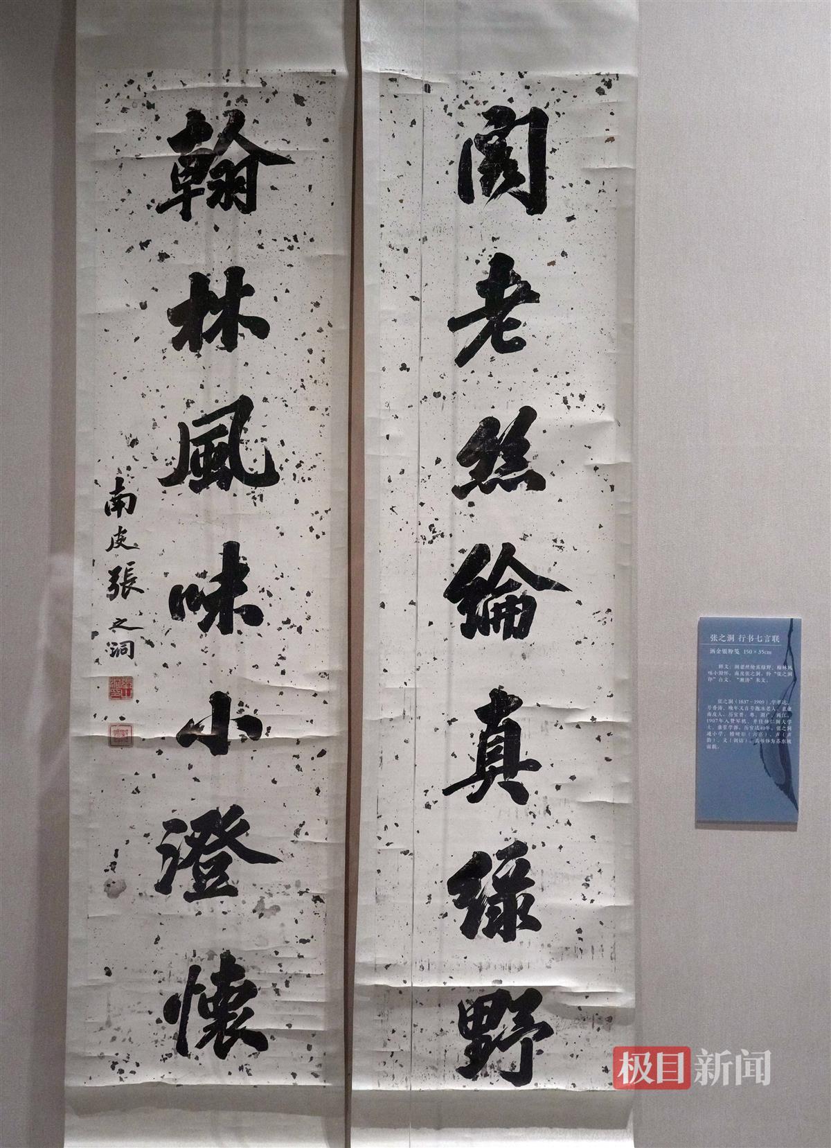 9月23日,“百年巨匠——湖北省博物馆近代书画特展”在省博南主馆四楼书画厅开展。作为湖北省博物馆建馆70周年系列活动之一,展览遴选了省博馆藏较有代表性的近代书画作品57件(套),皆为19至20世纪中国名家巨匠之作,包括齐白石、张大千等大家的书法作品。