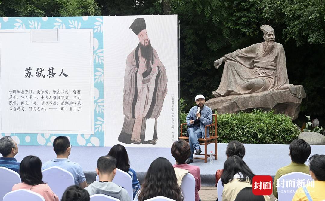 “大江东去,浪淘尽,千古风流人物。”9月26日下午,四川眉山三苏祠博物馆内,东坡盘陀像处传来朗朗诵读声。在“东坡大家讲”名家系列讲座第七讲中,四川大学历史文化学院教师、历史学博士、四川大学首届十大最受欢迎教师周鼎,以“问汝平生功业”为主题,用通俗易懂的语言,将苏轼沉浮的一生娓娓道来,并与大家齐诵《念奴娇·赤壁怀古》,氛围感十足。