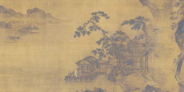 又如现藏故宫博物院的《江阁远眺图》,布局、笔墨均酷似马远。近景的楼榭与远景的山城遥遥相对,中间一片浩瀚水面,横无际涯,意境高远空阔。