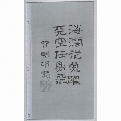 另一位宁波人胡镇,亦为吕纪之徒。他“工翎毛花卉,山水颖脱流辈”,还“潜心书学,多综览古今名帖”。胡镇有《跃鱼飞鸟图》传世,今藏京都国立博物馆。此图款书“海阔从鱼跃,天空任鸟飞”,署名“四明胡镇”,书法带有隶意,可见“潜心书学”之言不虚。