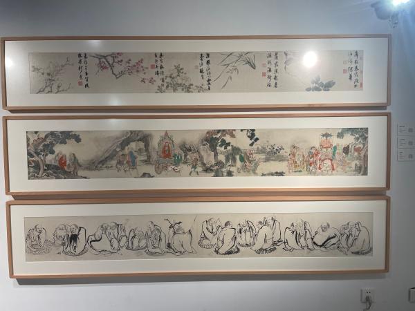上为赵备《四季花卉图》,中为卢镇《十八罗汉图》。