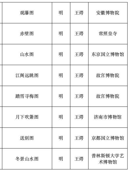 《明画全集》第一卷共收录8张王谔绘画,分别收藏于北京、安徽、山东,以及日本和美国。