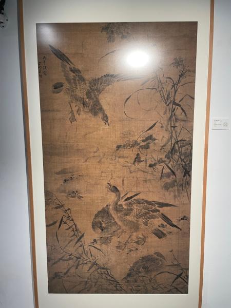 此外,浙江省博物馆还藏有吕纪曾孙吕健的《桃溪集禽图》,其打样稿也在“大系”宁波特展展出。图绘水墨山水,溪涧旁游鹅若干。然而鉴定家谢稚柳评论其“画面碎而气格小,与吕纪情意已了无关涉处”。