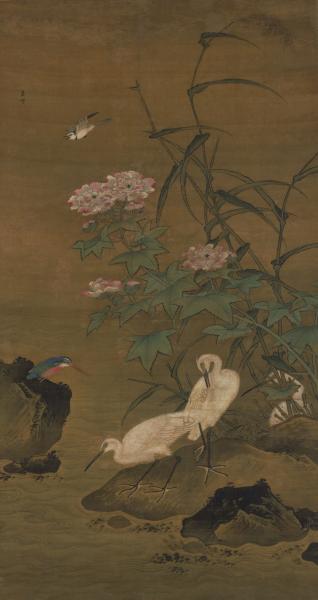 除却亲缘关系,吕纪还有若干拿得出手的徒弟。比如宁波人萧增。他跟随吕纪学画,弘治年间跟吕纪一起赴京成为宫廷画家,官至锦衣卫千户。萧增传世画作有《芙蓉白鹭图》,款署“萧增”,钤“金门画史”印,现藏东京国立博物馆。