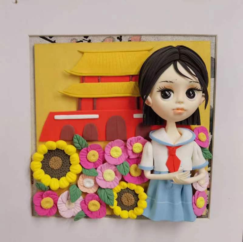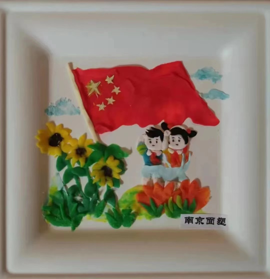 南京泥人最迟在清代末年已经出现,不同于无锡、天津等地的泥人,在汲取无锡泥人部分特点的基础上,结合南京本地工艺美术艺术特征,创造了南京泥人独特的艺术风格。南京市江南泥人研究所工艺师施茜则是想通过作品《我爱祖国,我爱天安门》,从小培养孩子的爱国情怀,好好学习,报效祖国。