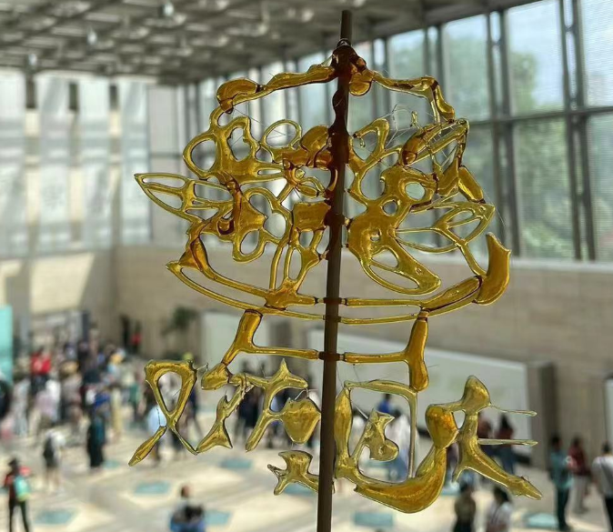 在六朝博物馆,普通观众也可以参与非遗作品的创作中。糖画,是一种传统民间手工艺,就是以糖做成的画,它是糖也是画,可观可食。