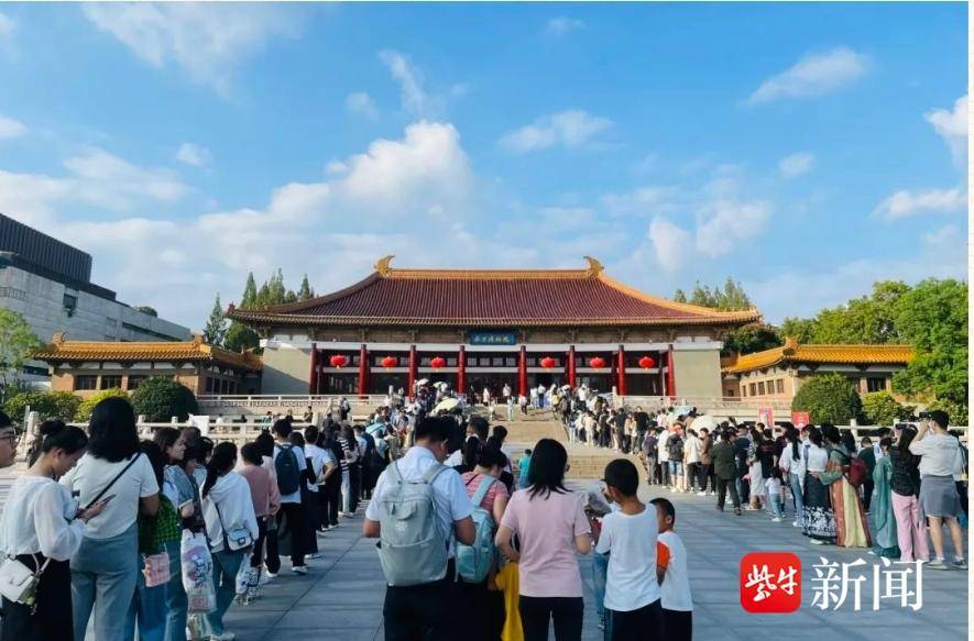 根据江苏智慧文旅平台监测:假日前四天,文博场馆接待观众前三的是侵华日军南京大屠杀遇难同胞纪念馆(11万人次)、南京博物院(10.5万人次)和扬州中国大运河博物馆(7.7万人次)。
