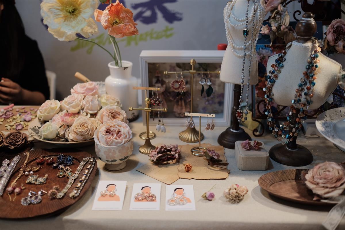 经过总结复盘,第二次的市集,乐晕晕和伙伴们显然得心应手很多。“我们改进了陈列,丰富了产品,把手工作品更加‘商品化’和‘刚需化’。以前以卖插花为主,这次我们做了很多胸针、耳环、戒指、手链、项链等系列配饰,也准备了包装袋、礼品盒,定价更加亲民。有很多女孩子喜欢我们的作品,付款后直接戴上。”