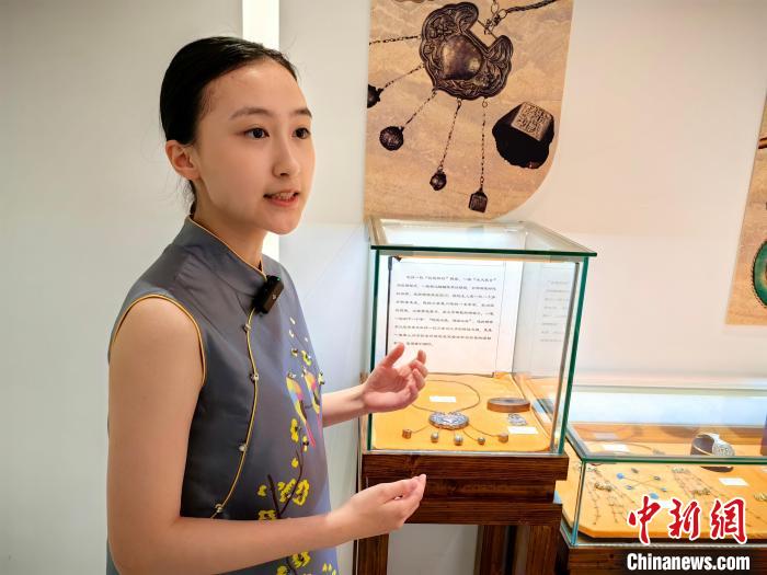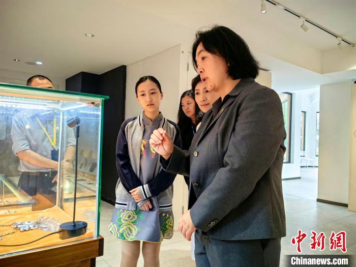 贾茗萱的父亲是一位收藏爱好者。他告诉记者,小时候他的奶奶佩戴着银饰,老人会给他讲图案中的故事,不知不觉中点燃了心中对中华传统文化探究的火种。如今,他和女儿收藏的银饰中就有奶奶留下的首饰。贾先生说,此次呈现的展品是父女俩从所有藏品中精心挑选出、具有代表性的传统银饰品,希望能从一个侧面展示中国传统文化的魅力。
