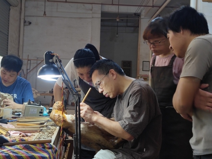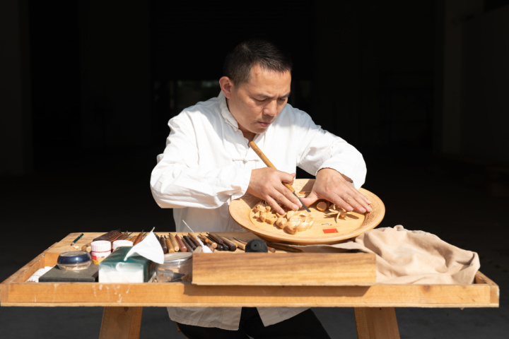 如今,他和众多同行已经入驻东阳木雕小镇,致力于木雕文创和文旅的发展,还与诸多大学、院校建立良好的交流渠道。