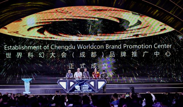 10月22日晚,在第81届世界科幻大会闭幕式上,嘉宾见证世界科幻大会(成都)品牌推广中心成立。新华社发