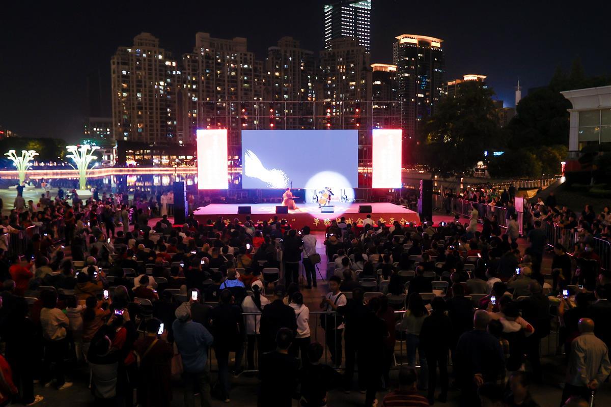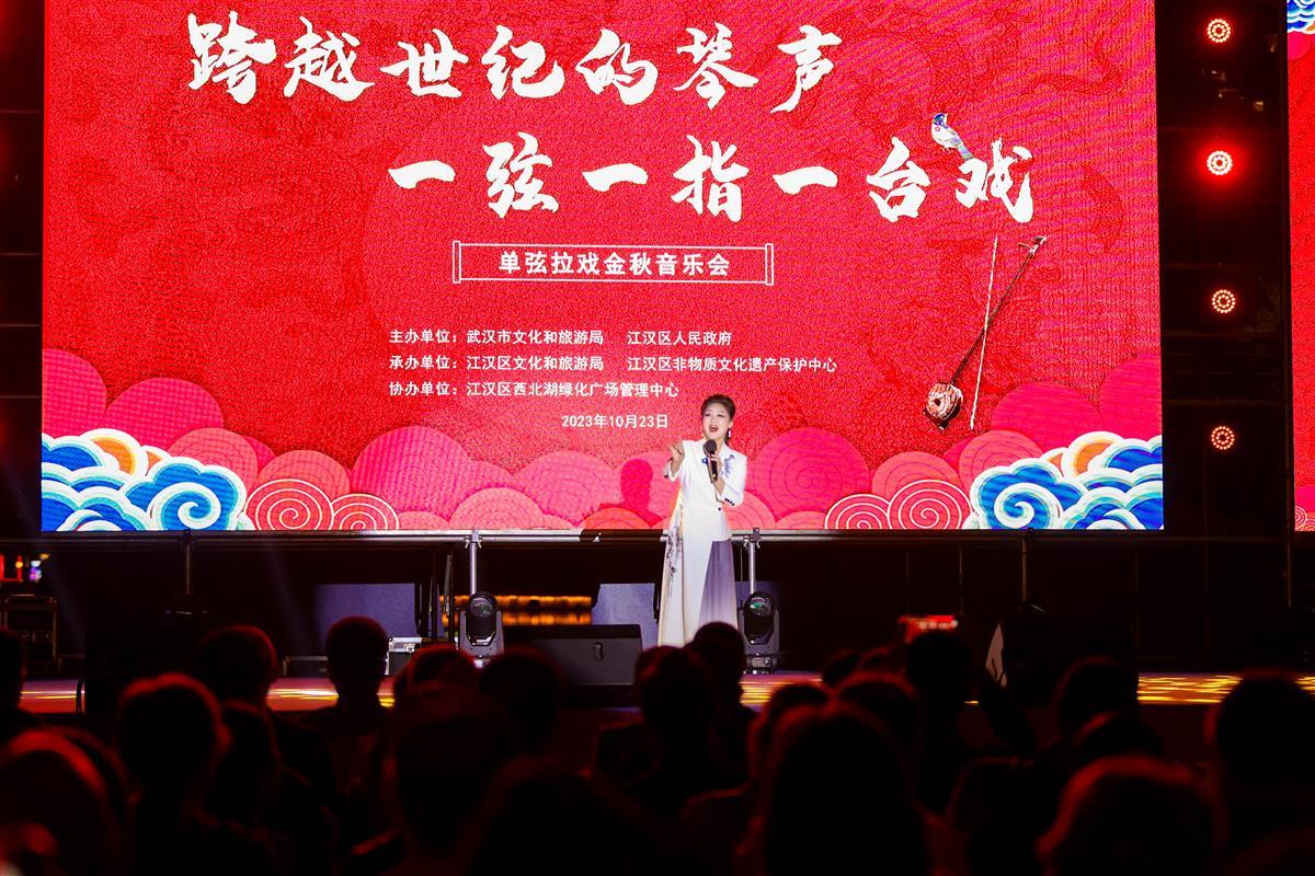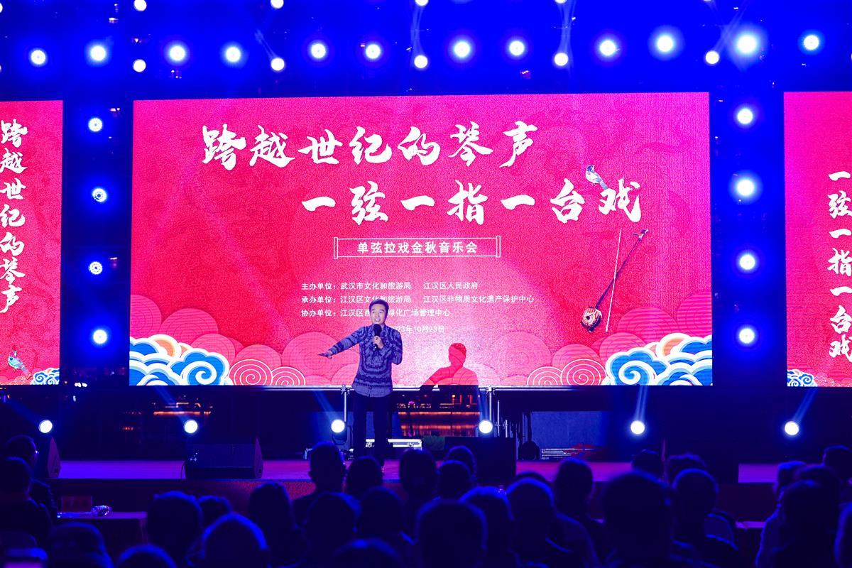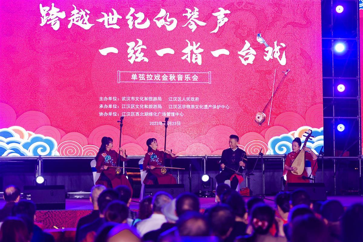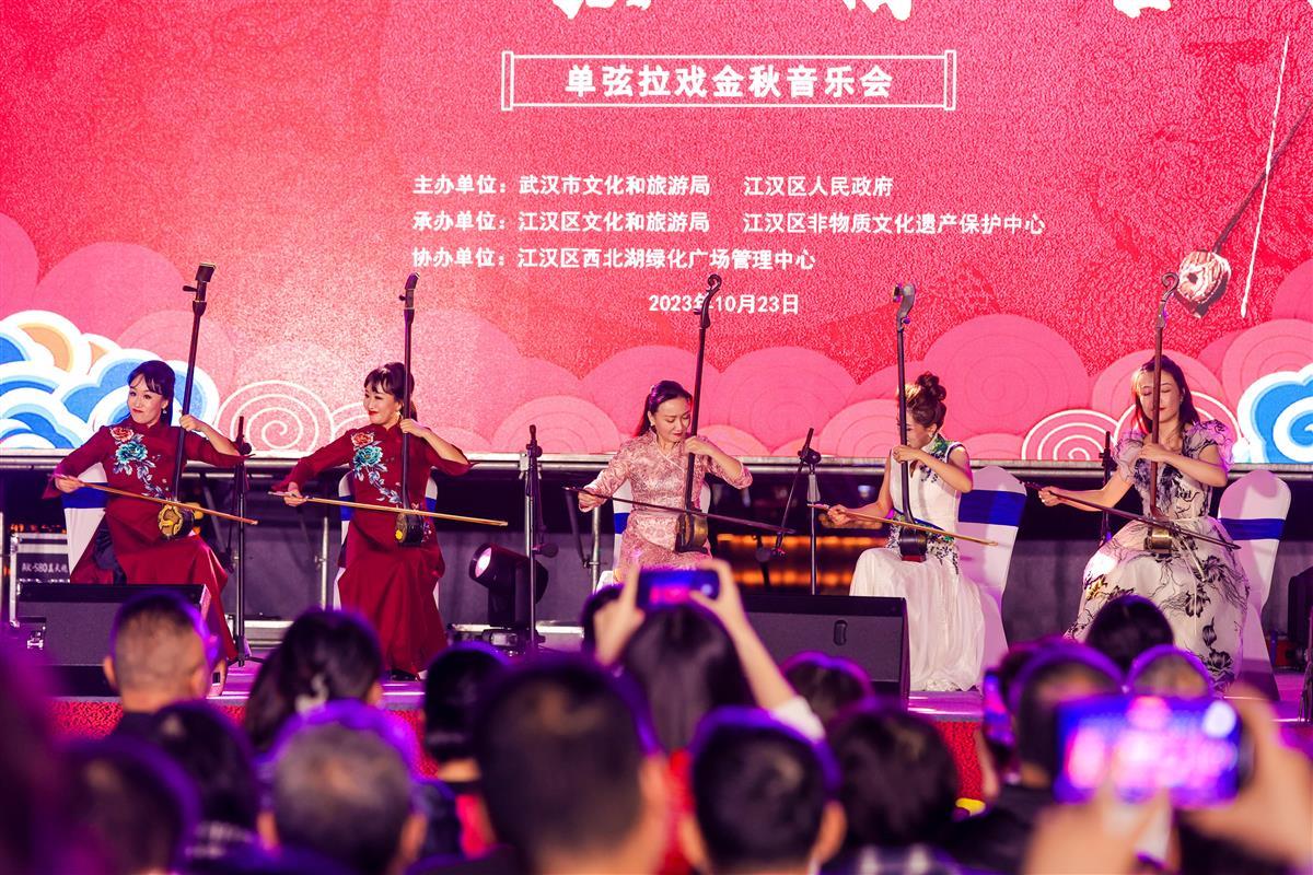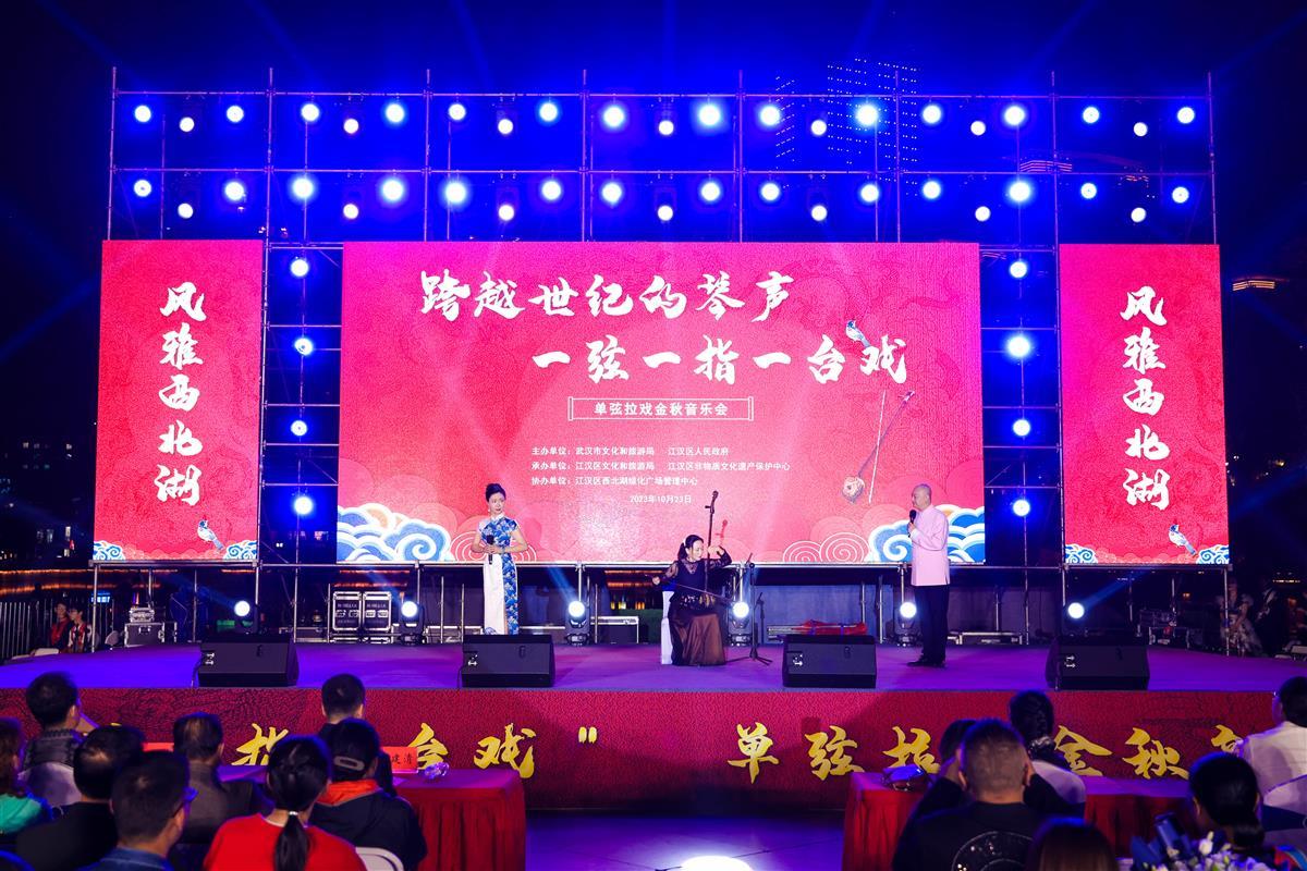 10月23日晚,“跨越世纪的琴声·一弦一指一台戏——单弦拉戏金秋音乐会”在武汉西北湖绿化广场举行。