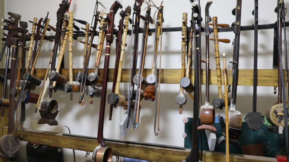 七岁时,赵全喜受父亲影响开始学习软弓京胡,这一学便是近六十年。直到现在,除了练琴之外,对琴的制作和调试、对理论知识的学习和研究都已成为他生活的一部分。为了方便作琴,赵全喜索性将工作室安置在家里,各式各样的软弓京胡、坠琴等乐器琳琅满目。