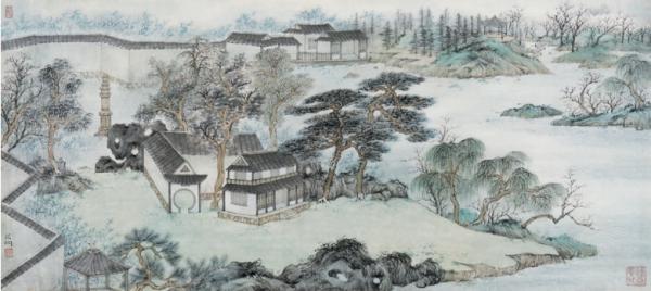 楼阁参差、山石峥嵘,树木苍翠,陈翔的《豫园·都市山林》和苏小松的《豫园夏深》刻画了豫园不同季节的古典之美;同一座古猗园,在朱新龙与邵仄炯笔下,又是截然不同的风格;鲐背之年薛邃老人笔下的秋霞圃园,一派天真之气扑面而来。