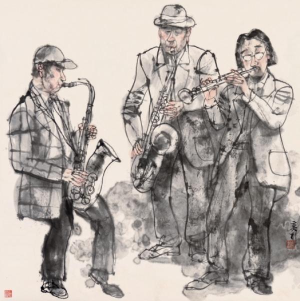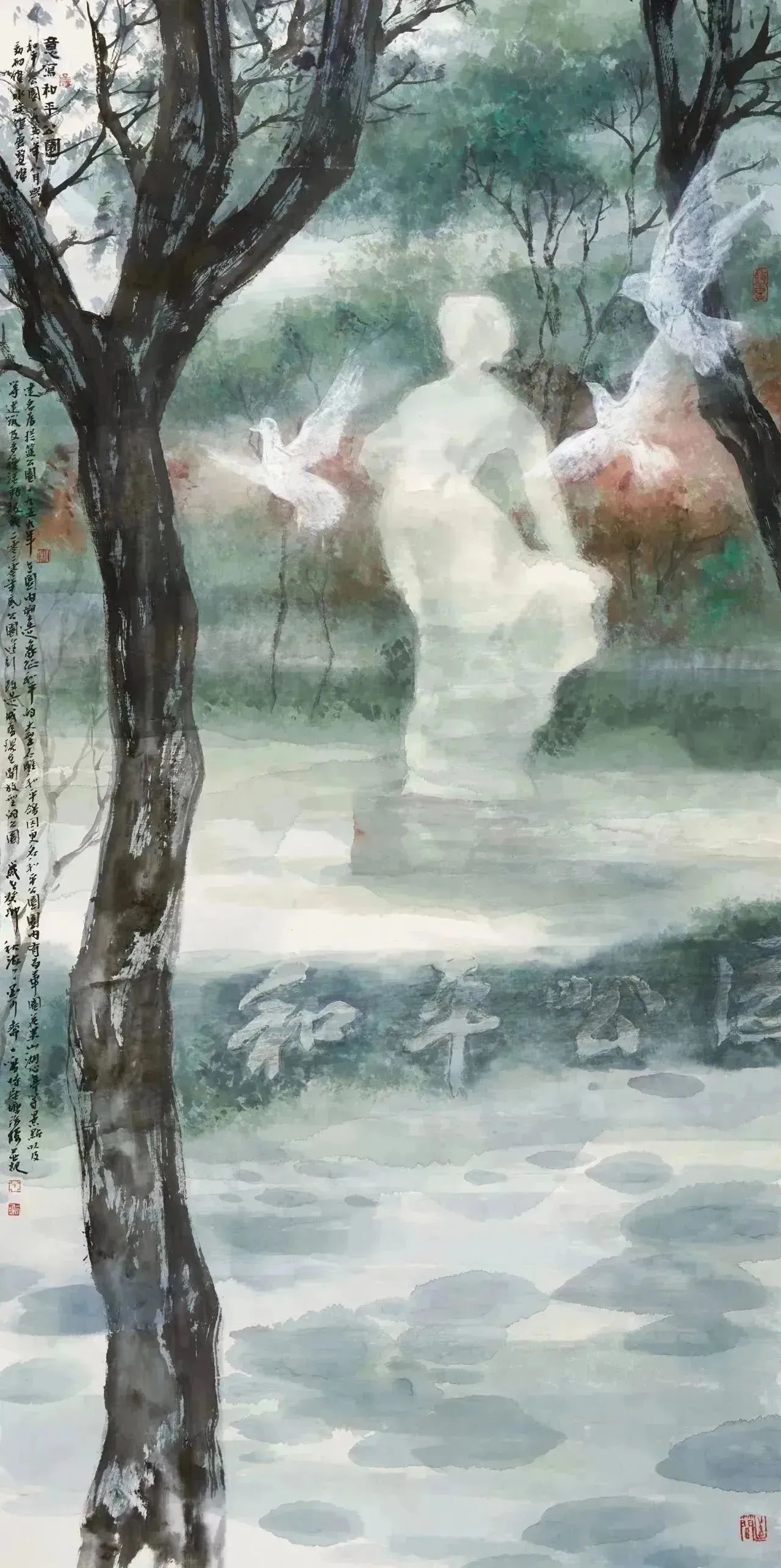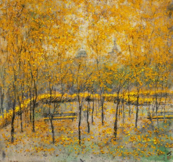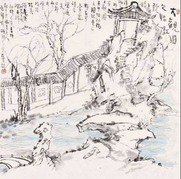 丁一鸣意写和平公园纸本设色