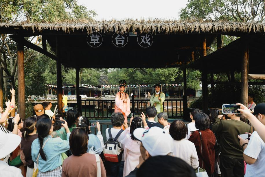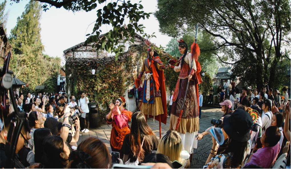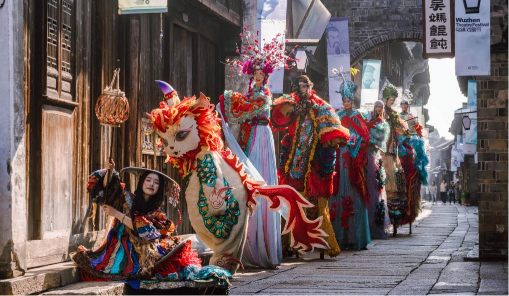 乌镇戏剧节古镇嘉年华上戏曲演员正在表演。主办方供图