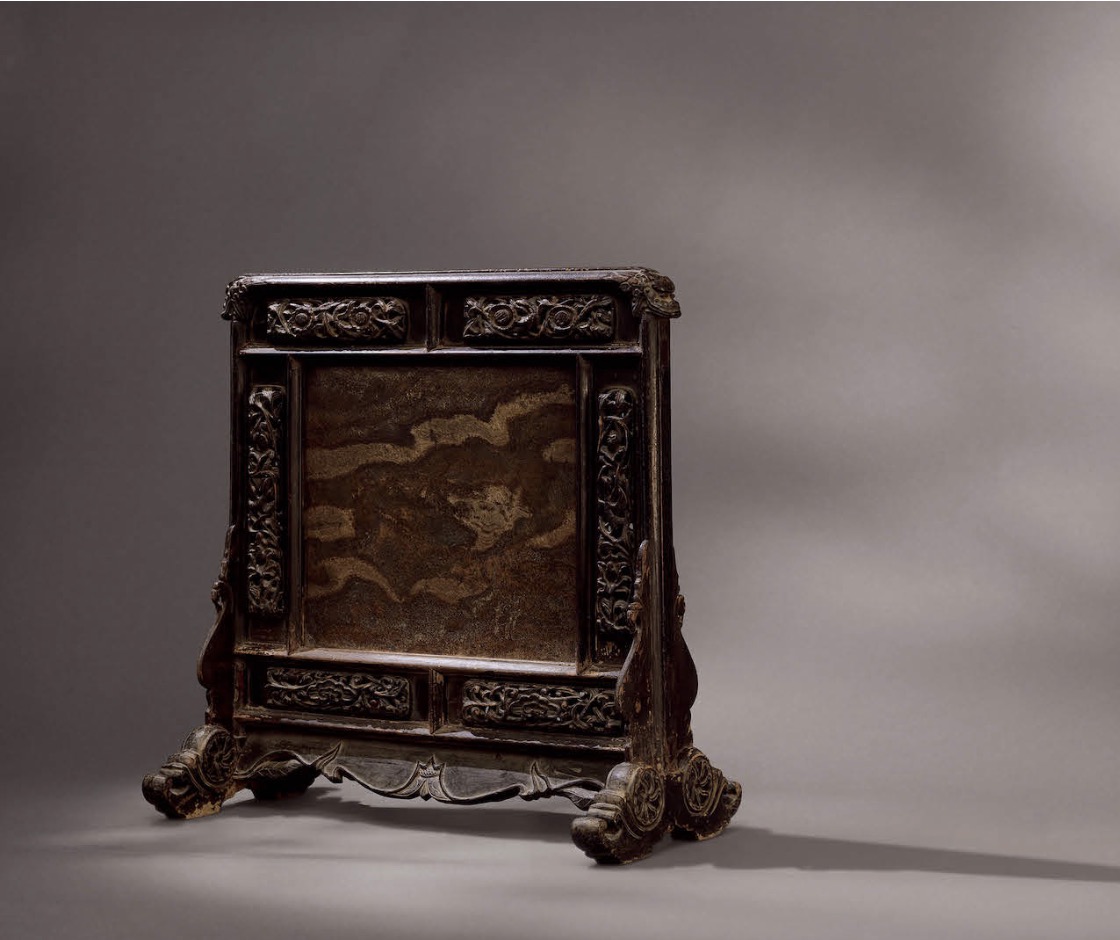 嵌石插屏,明末清初/16至17世纪,黑漆、木材,44.3x40.5x22.5厘米,北京小孤山馆藏