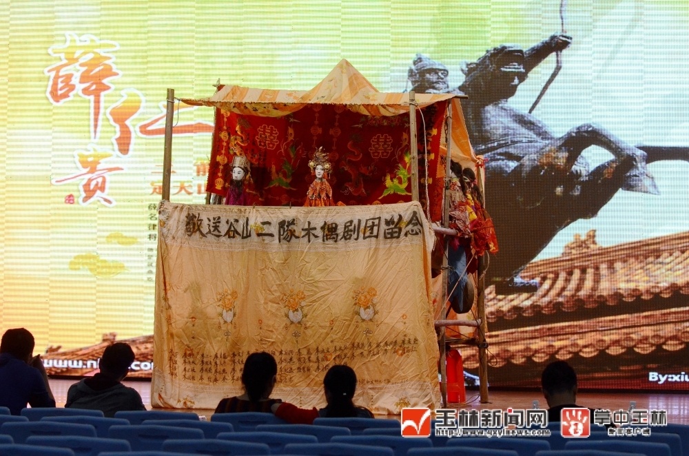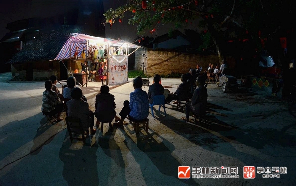 在文化艺术节上,北流市文化馆还组织了北流常兴木偶剧团表演传统木偶戏。主演者为北流杖头木偶戏玉林市级传承人蒙良荣。这种传统木偶戏不但受到了老年人的喜欢,也吸引了不少年轻人。每晚正式演出时,演员在激昂的锣鼓声中,通过精湛的演技,让木偶在布幔上方或进退,或打斗,唱念做打、浑然一体。乐师们有板有眼地敲打着锣鼓家什,配合默契。台前的观众叫好声不断。连续多个晚上,木偶剧团为观众表演了《薛丁山三上寒江》《薛仁贵三次投军》《狄龙祝枝山求妻》等精彩曲目。
