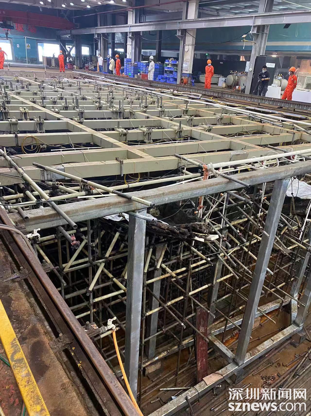 海洋出水木质沉船保护是一个世界性的难题。国家文物局考古研究中心副主任王大民表示,未来几年的保护工作,将要完成四大核心任务:一是将现有支撑体逐步替换升级为稳定性支撑结构,满足安全及工作的全方位需要;二是搭建整体喷淋系统装置,对船体进行清洗脱盐;三是完成船体填充加固及脱水定型;四是对船体进行修复复原。对于船载出水文物,按不同材质分类,完成清理、脱盐、修复、稳定保存等保护工作。
