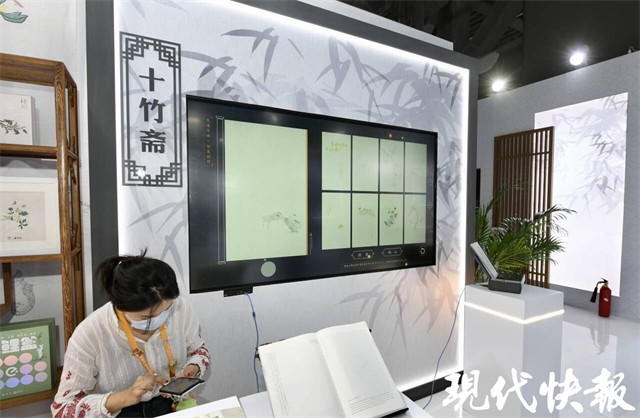 百年古籍数字化重生了!十竹斋作为中华艺术四大老字号之一,是南京文化的重要代表符号。现场,十竹斋带来的《十竹斋笺谱》数字重生体验装置,实现了笺画数字化重现,让典籍焕发新活力。现场观众沉浸式体验“饾版、拱花”非遗印刷技术,并且还可以重组《十竹斋笺谱》的元素,DIY数字化作品。现场工作人员刘璐介绍,在数字笺谱的演绎过程中,对十竹斋历史文脉故事及非遗技艺进行了补充介绍,将曾经易失易损的文化典籍转化为不可磨灭的数字资产,更好呈现典籍背后的故事。