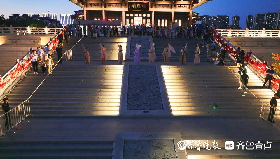 11月8日中国文旅企业合作发展大会在淄开幕前夕,11月7日晚,由淄博市文旅局、齐鲁晚报·齐鲁壹点联合策划的文旅演艺活动——“追光海岱楼·奇妙淄博夜”系列活动第八期再次闪耀淄博城市地标。