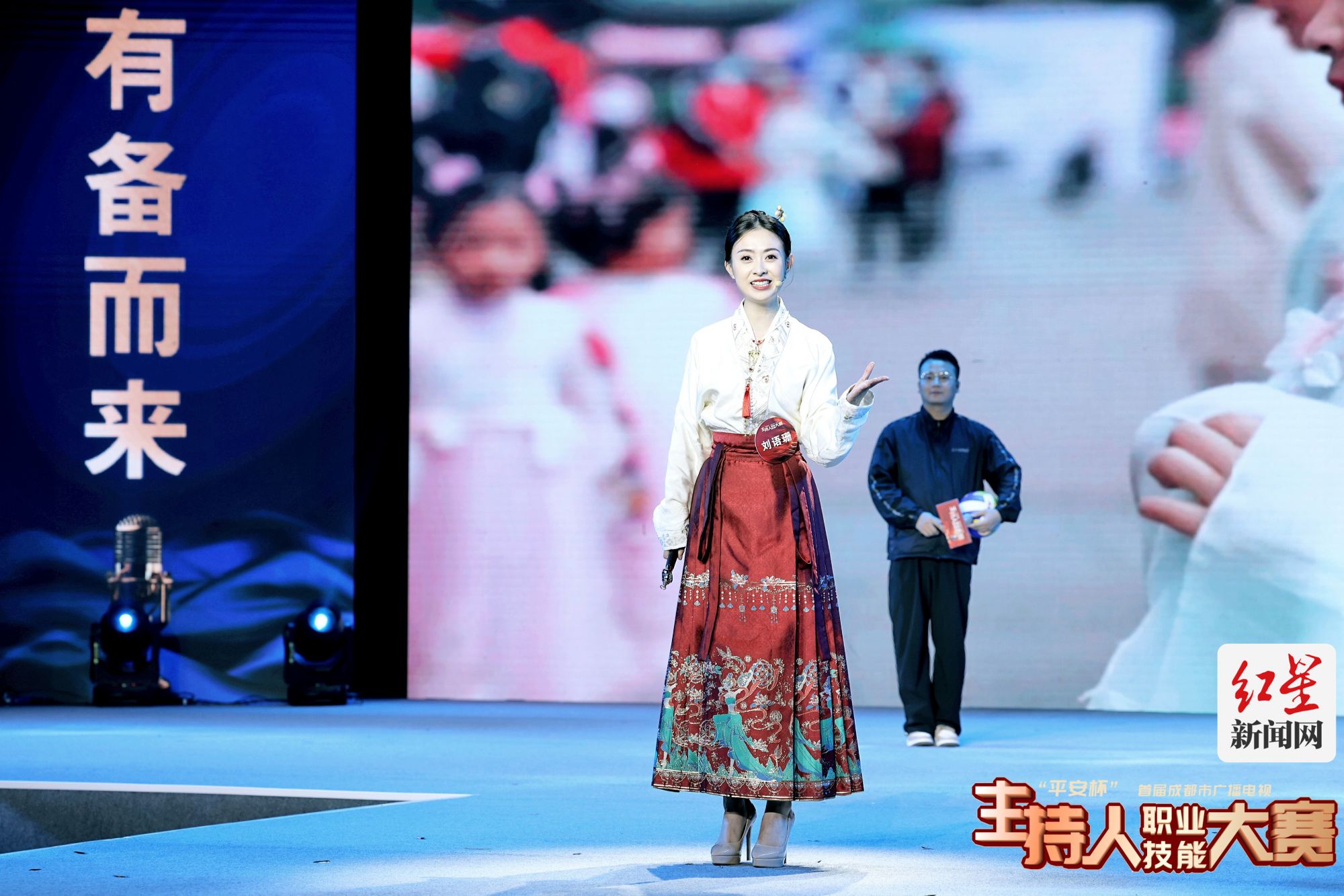 舞台上,既有对“静音车厢”“预制菜”等热门话题进行观点评述,同时现场模拟晚会、新媒体直播等,也让观众们“身临其境”沉浸式感受主持的魅力。在激烈的竞争中,选手们表现出极高的专业素养和知识储备,以流畅的表达,获得了现场观众的热烈掌声,收获了评委的肯定。