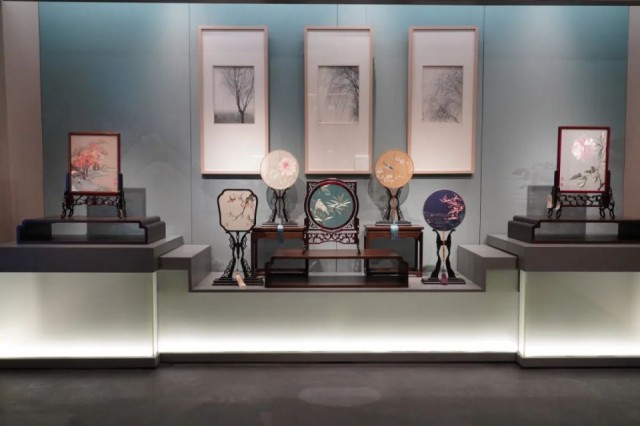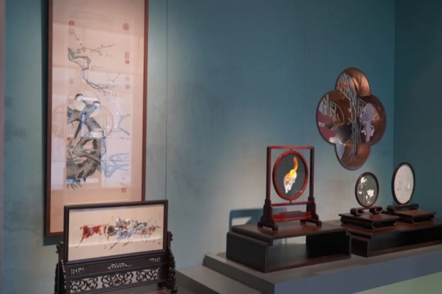 在“苏作馆”可以感受到浓郁的江南文化气息,其中的苏绣经典作品,题材有花鸟、动物、山水、人物等。