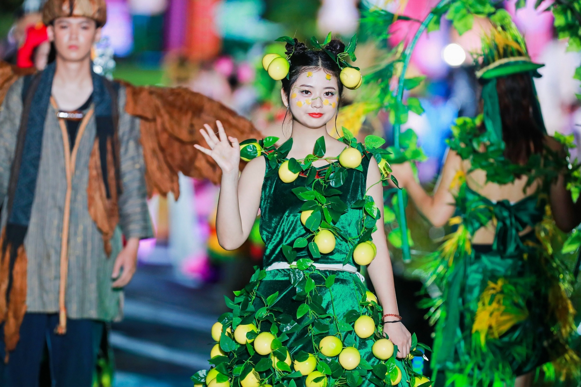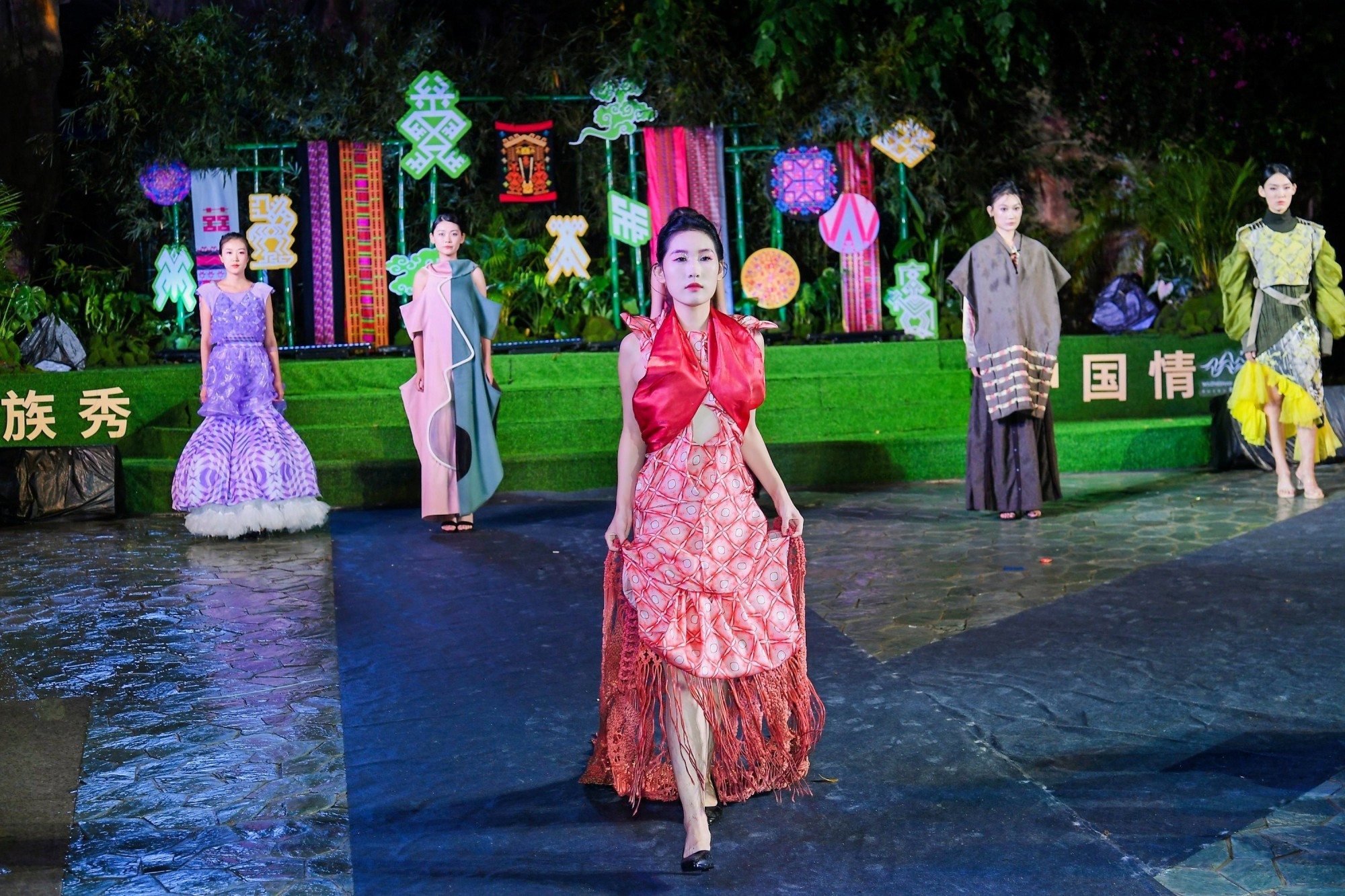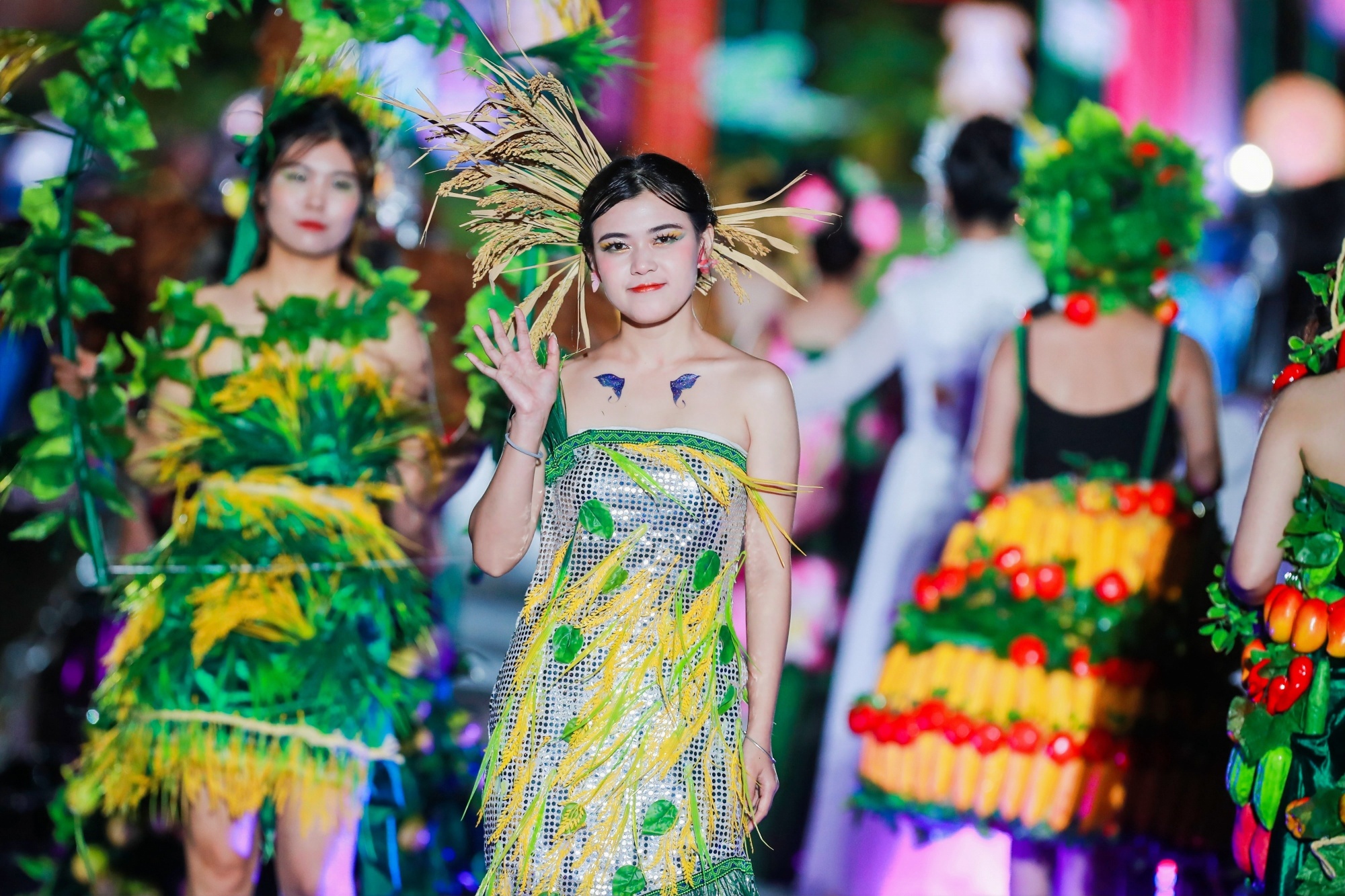 村民“模特们”身着意大利马兰戈尼学院设计师设计的新潮服饰以及各乡镇极具人气的“丰收女神”“苗族女神”、“百香果仙子”等闪亮登场,给观众带来一场精彩绝伦的视觉享受。